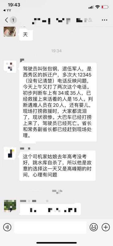 (杨占青@yangzhanqing·2020年7月8日:不要以为强拆的不是自己房子,和自己无关,被拆迁户可能是自己孩子的司机,刚刚开着大巴带一车人跳水库的司机据说就是西秀区的一个拆迁户。